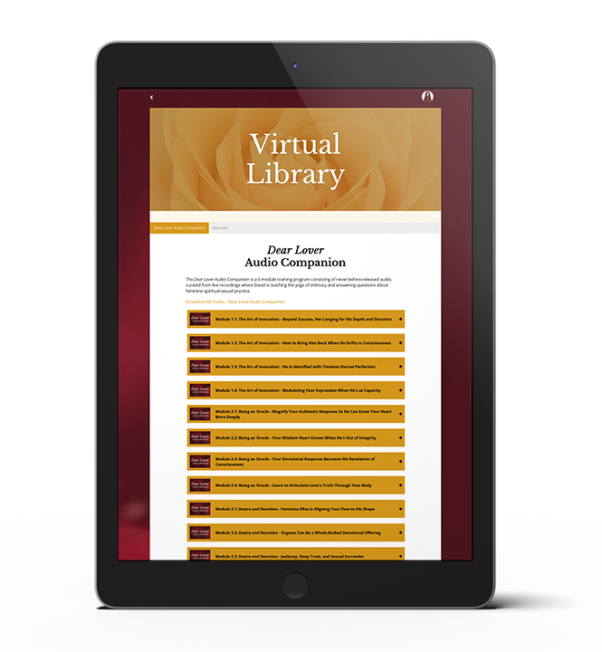 This is David's only online training program for women, and it's designed to bring you his most profound teachings on spiritual and sexual devotion as a path to ecstatic intimate communion with yourself, your lover, and the divine.